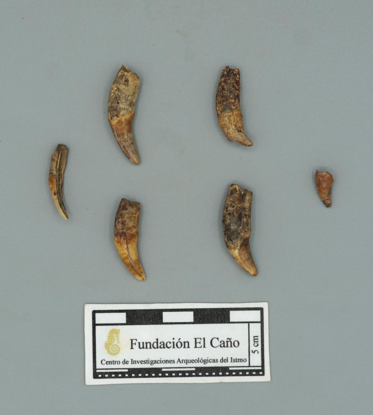 3567 - Conjunto de caninos de felino que integraban un collar ornamental, posiblemente asociado a símbolos de poder.