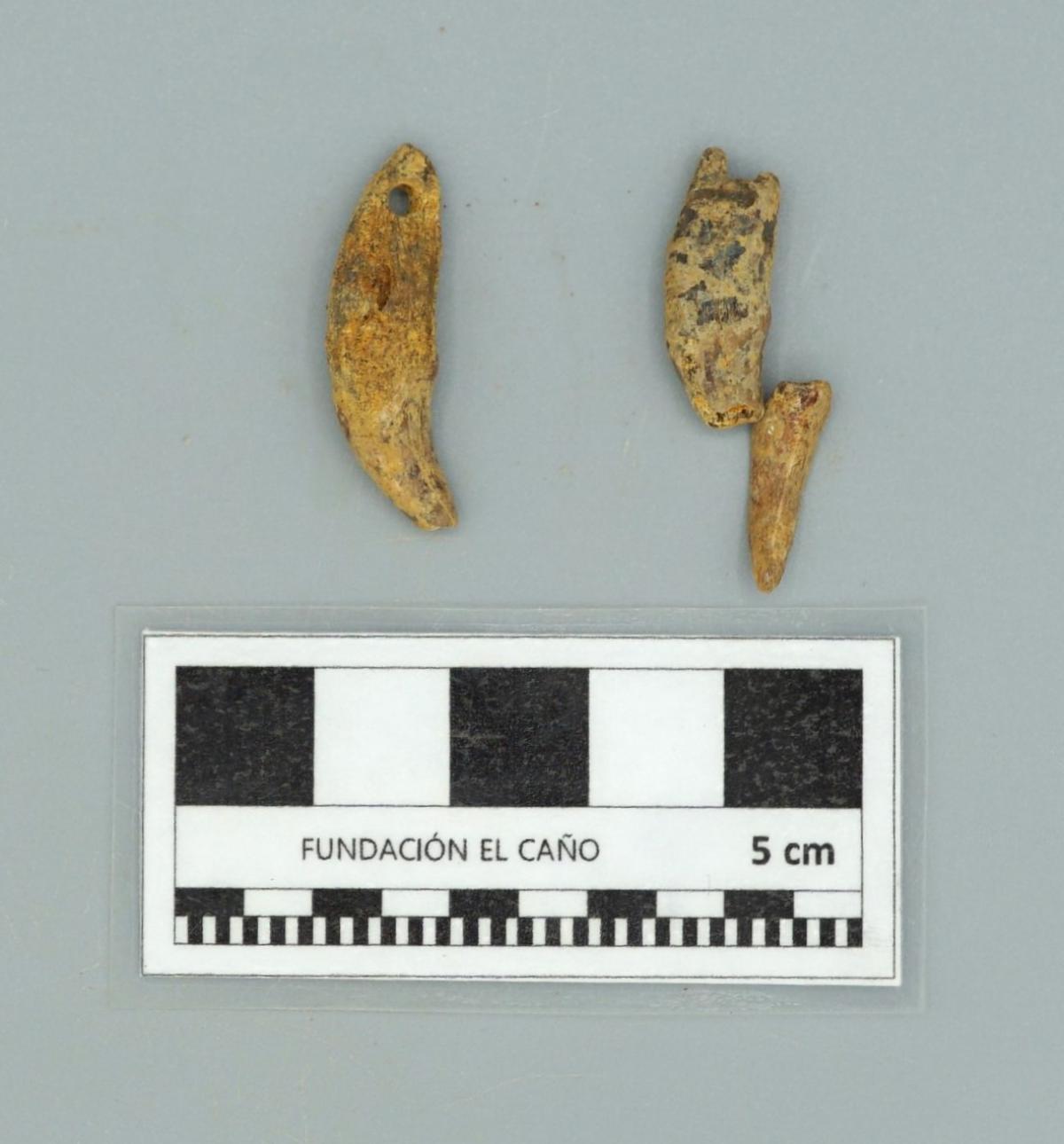 3592 - Canino de perro perforado. Aunque se encuentra fragmentado, se conservan sus partes.