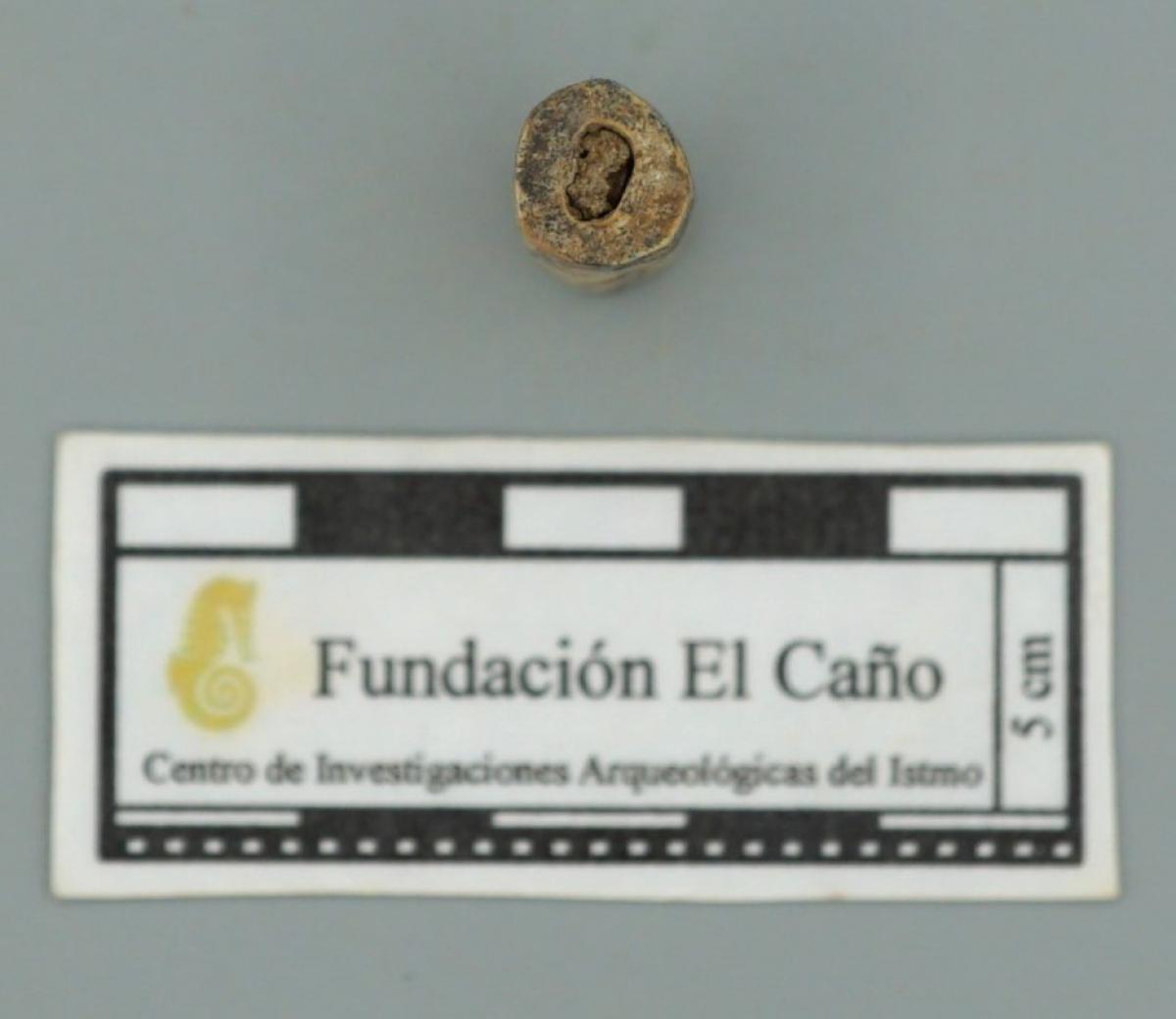 3571 - Diente perforado de tiburón. La perforación indica que pudo haber formado parte de un artefacto ornamental.