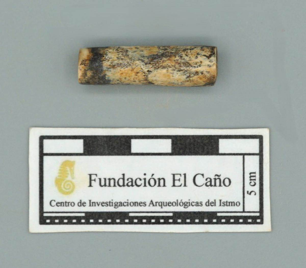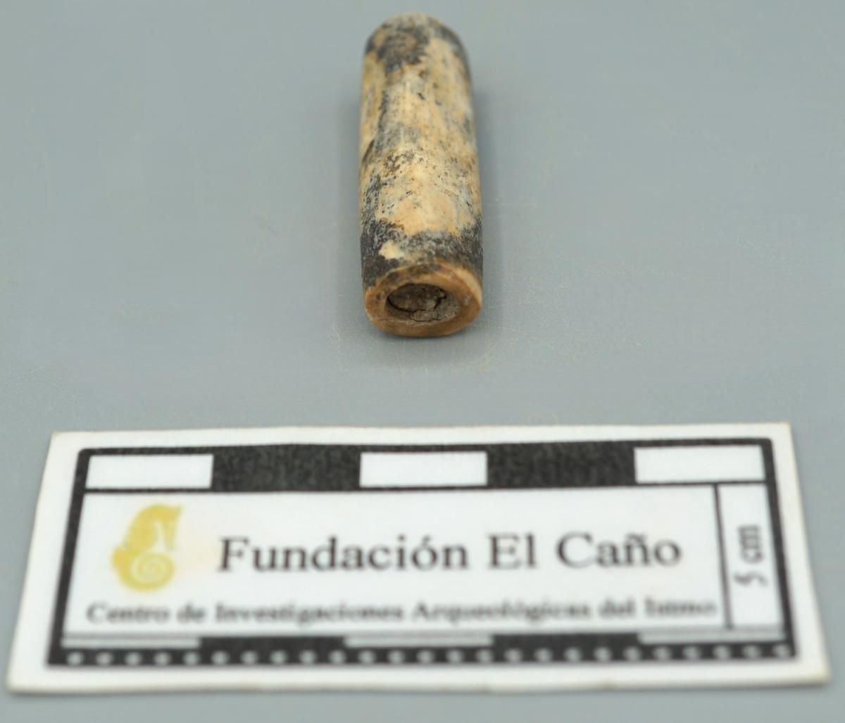 Cuenta de hueso fabricada con la diáfisis de un hueso metapodial de felino.