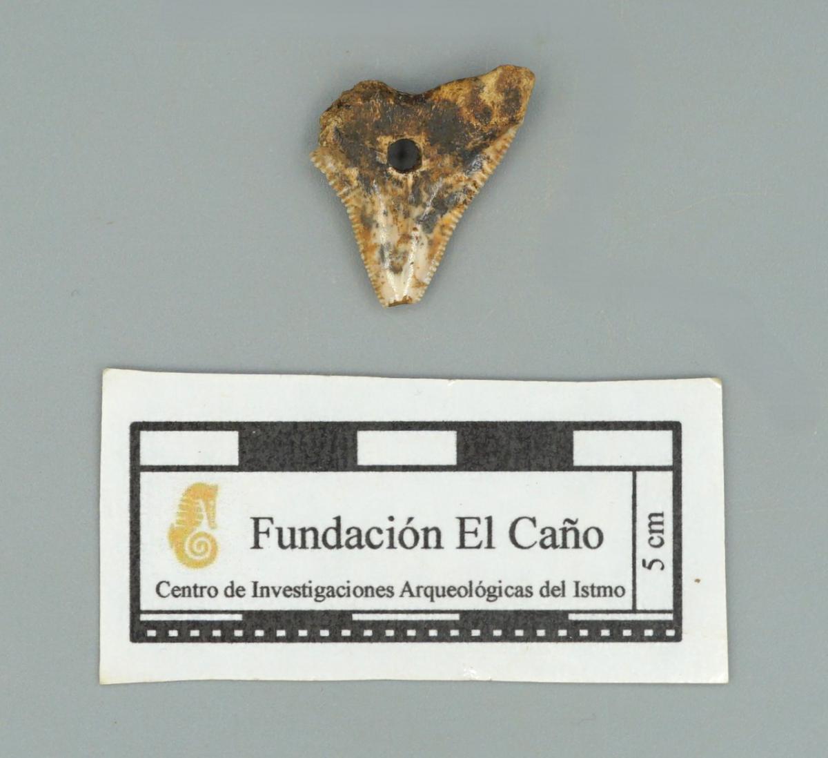 3571 - Diente perforado de tiburón. La perforación indica que pudo haber formado parte de un artefacto ornamental.