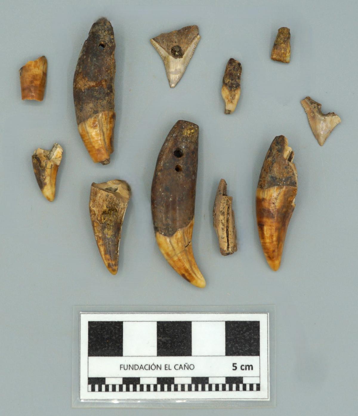 Las piezas dentales presentan perforaciones, por lo que pudieron haber sido utilizadas como pendientes.