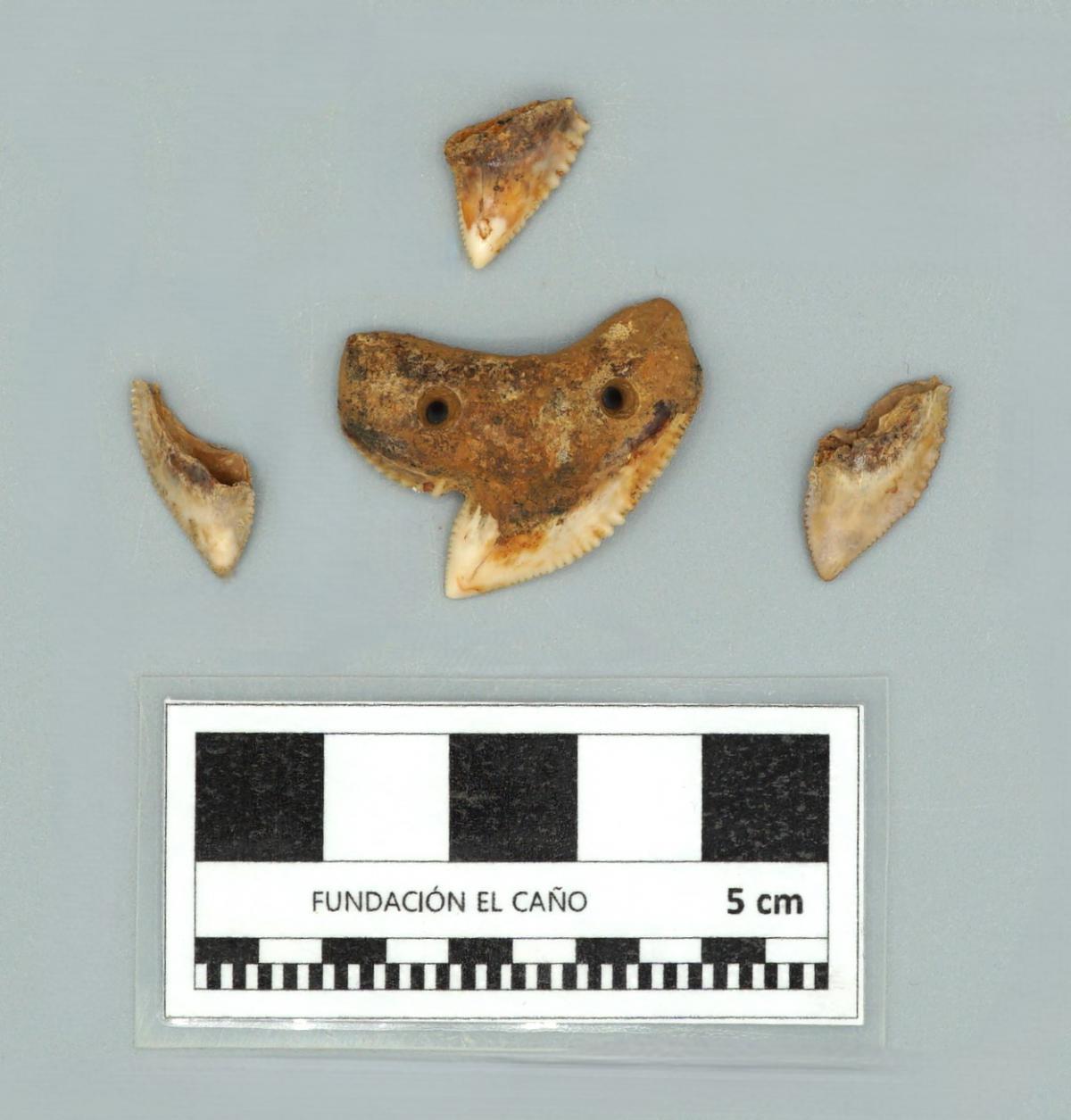 3571 - Diente perforado de tiburón. La perforación indica que pudo haber formado parte de un artefacto ornamental.