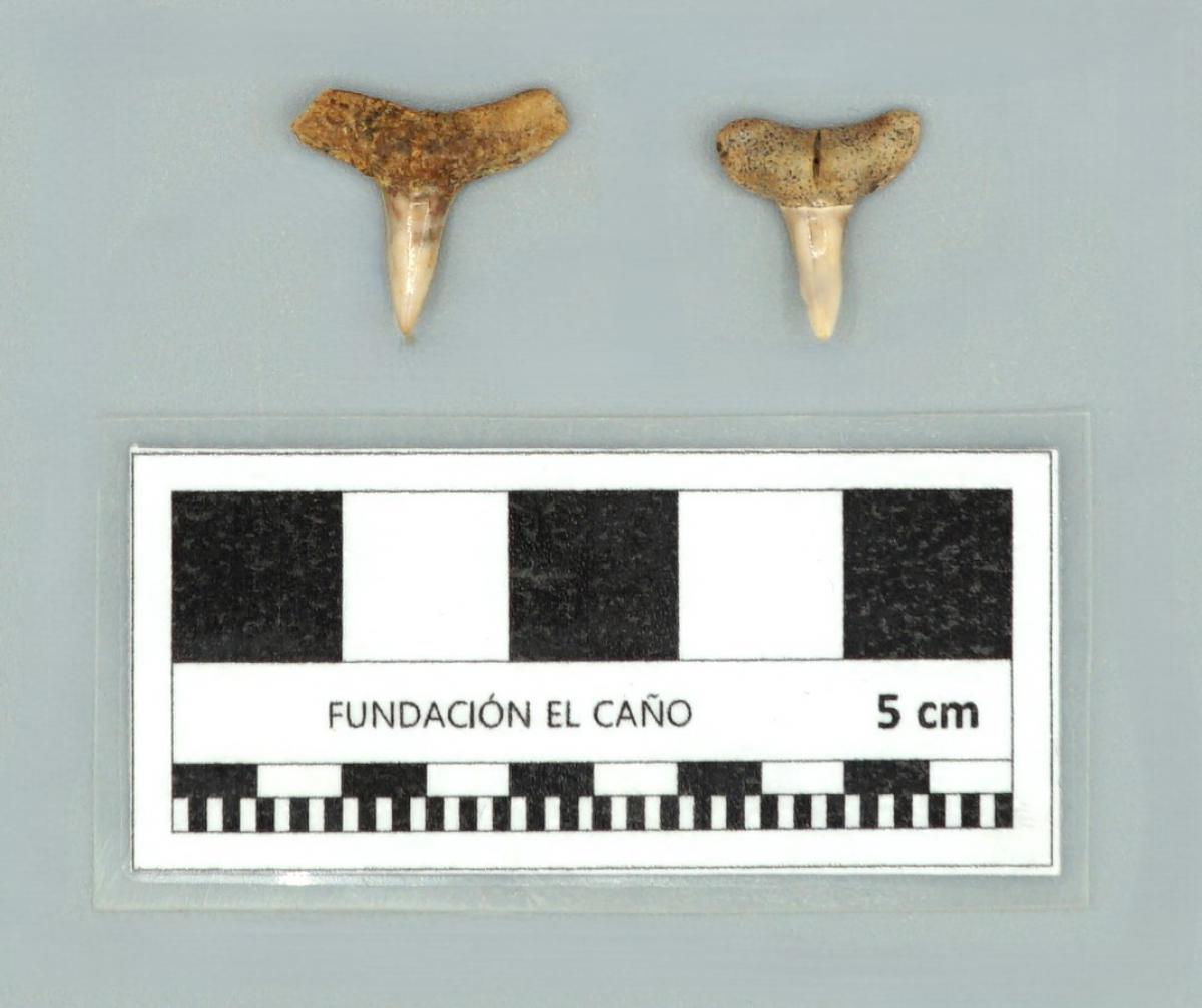 3571 - Diente perforado de tiburón. La perforación indica que pudo haber formado parte de un artefacto ornamental.