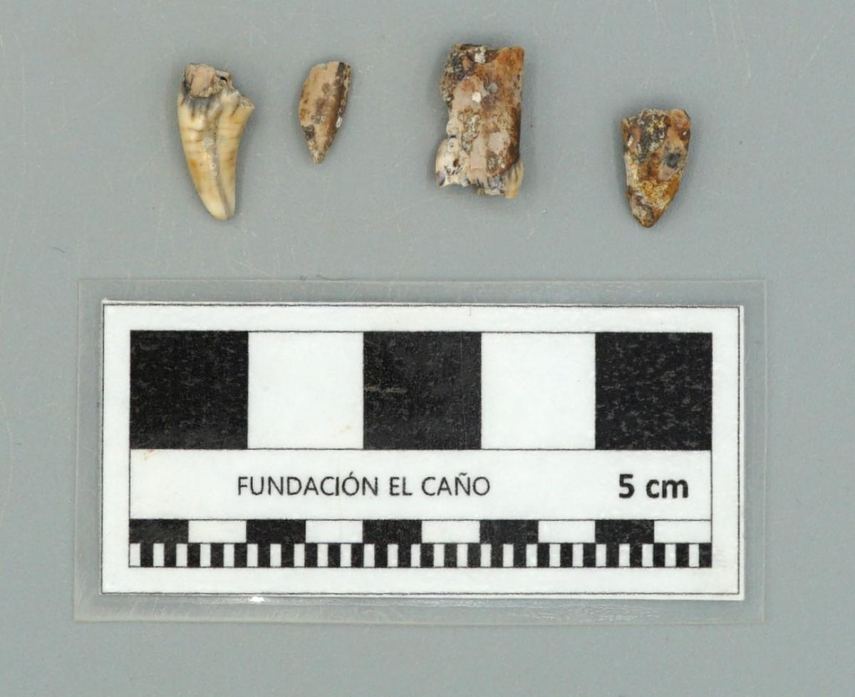 3586 - Caninos fragmentados de perro.