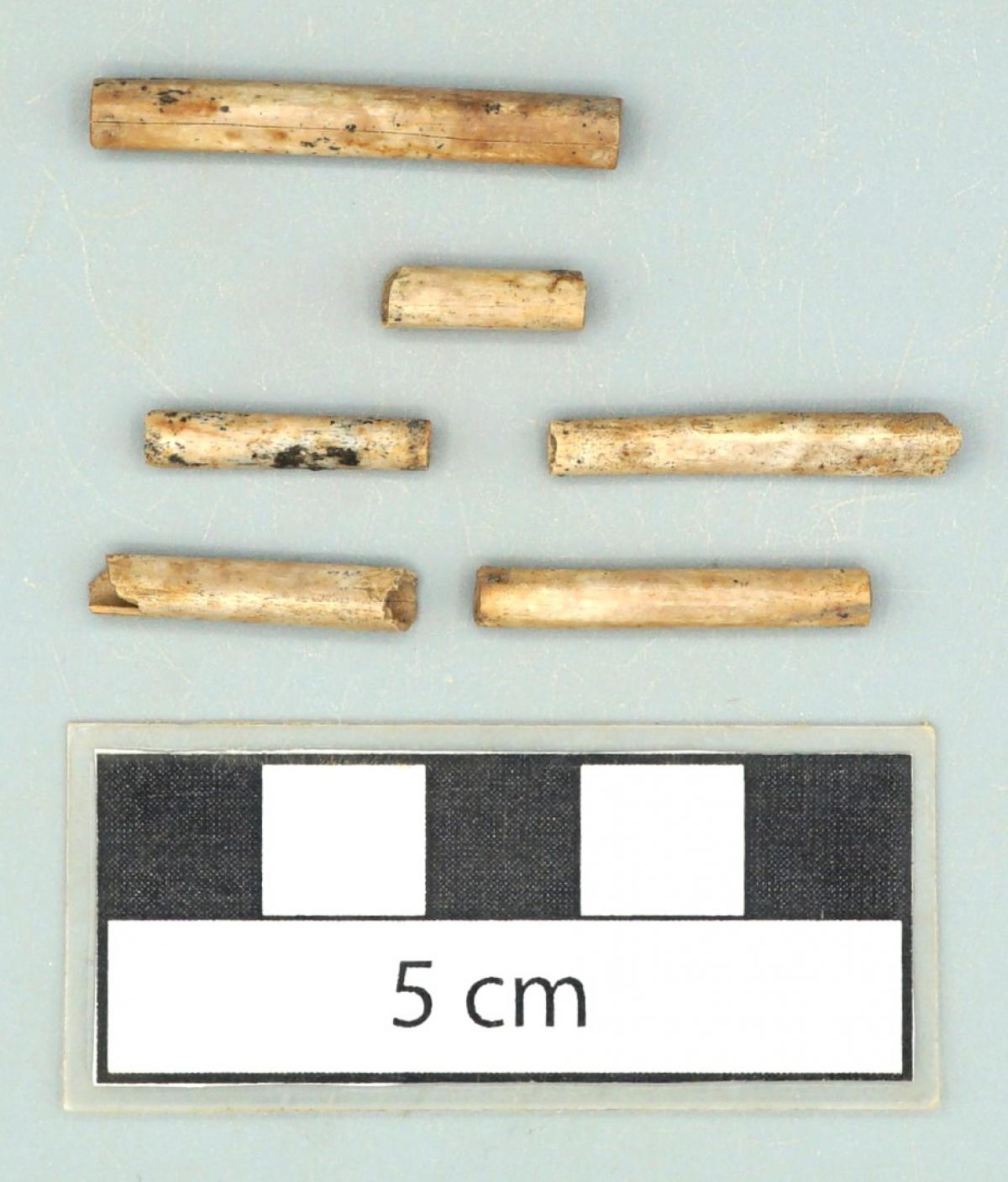 3546 - Conjunto de cuentas circulares y tubulares confeccionadas con hueso de ave.