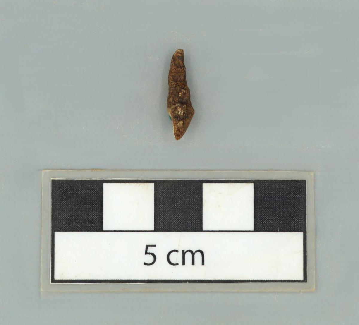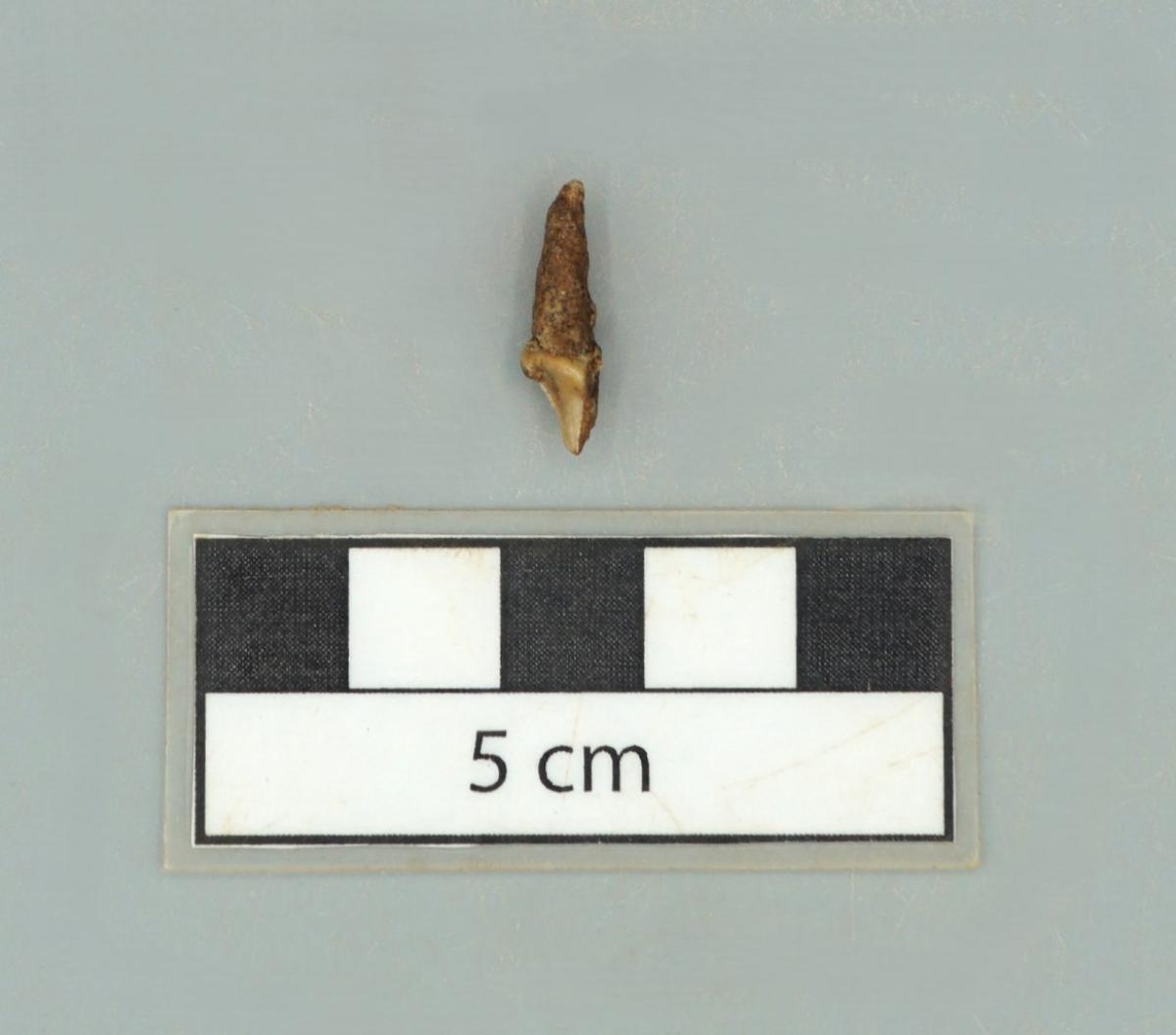 3571 - Diente perforado de tiburón. La perforación indica que pudo haber formado parte de un artefacto ornamental.