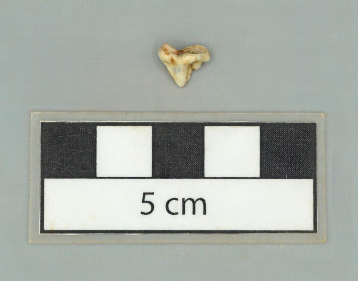 3571 - Diente perforado de tiburón. La perforación indica que pudo haber formado parte de un artefacto ornamental.
