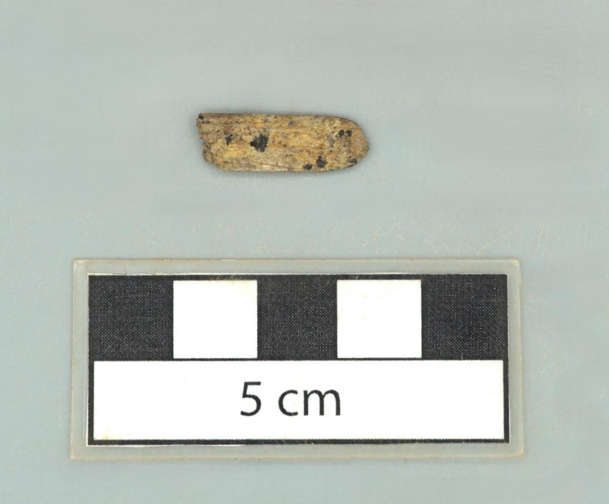 3571 - Diente perforado de tiburón. La perforación indica que pudo haber formado parte de un artefacto ornamental.