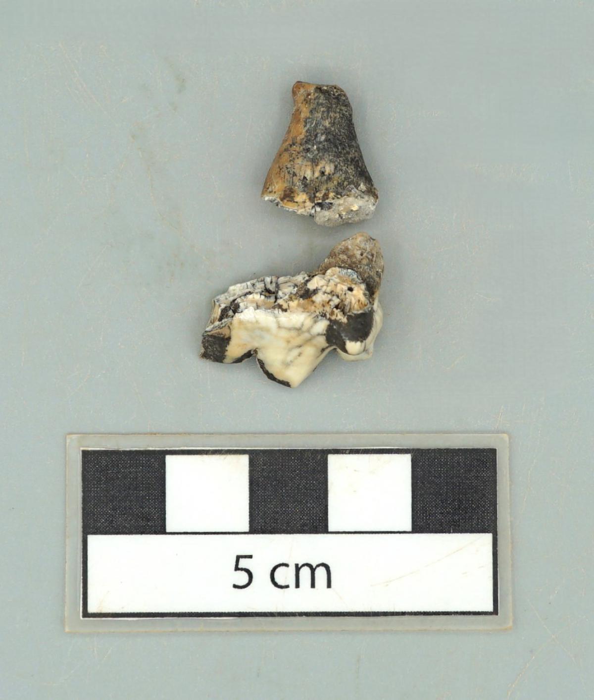 3592 - Canino de perro perforado. Aunque se encuentra fragmentado, se conservan sus partes.