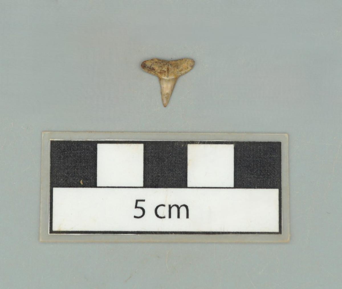 3571 - Diente perforado de tiburón. La perforación indica que pudo haber formado parte de un artefacto ornamental.