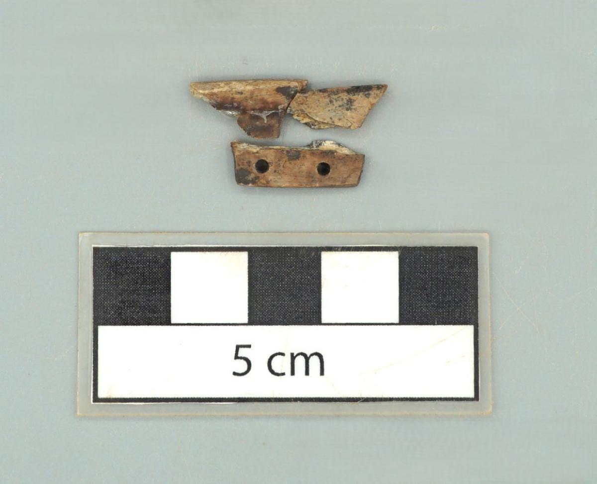 3592 - Canino de perro perforado. Aunque se encuentra fragmentado, se conservan sus partes.