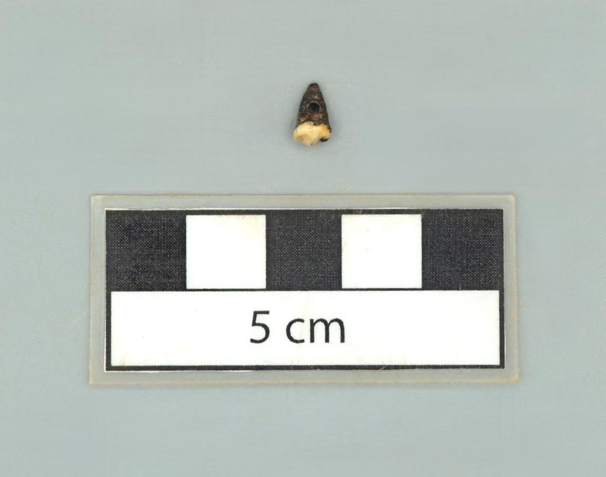 3571 - Diente perforado de tiburón. La perforación indica que pudo haber formado parte de un artefacto ornamental.