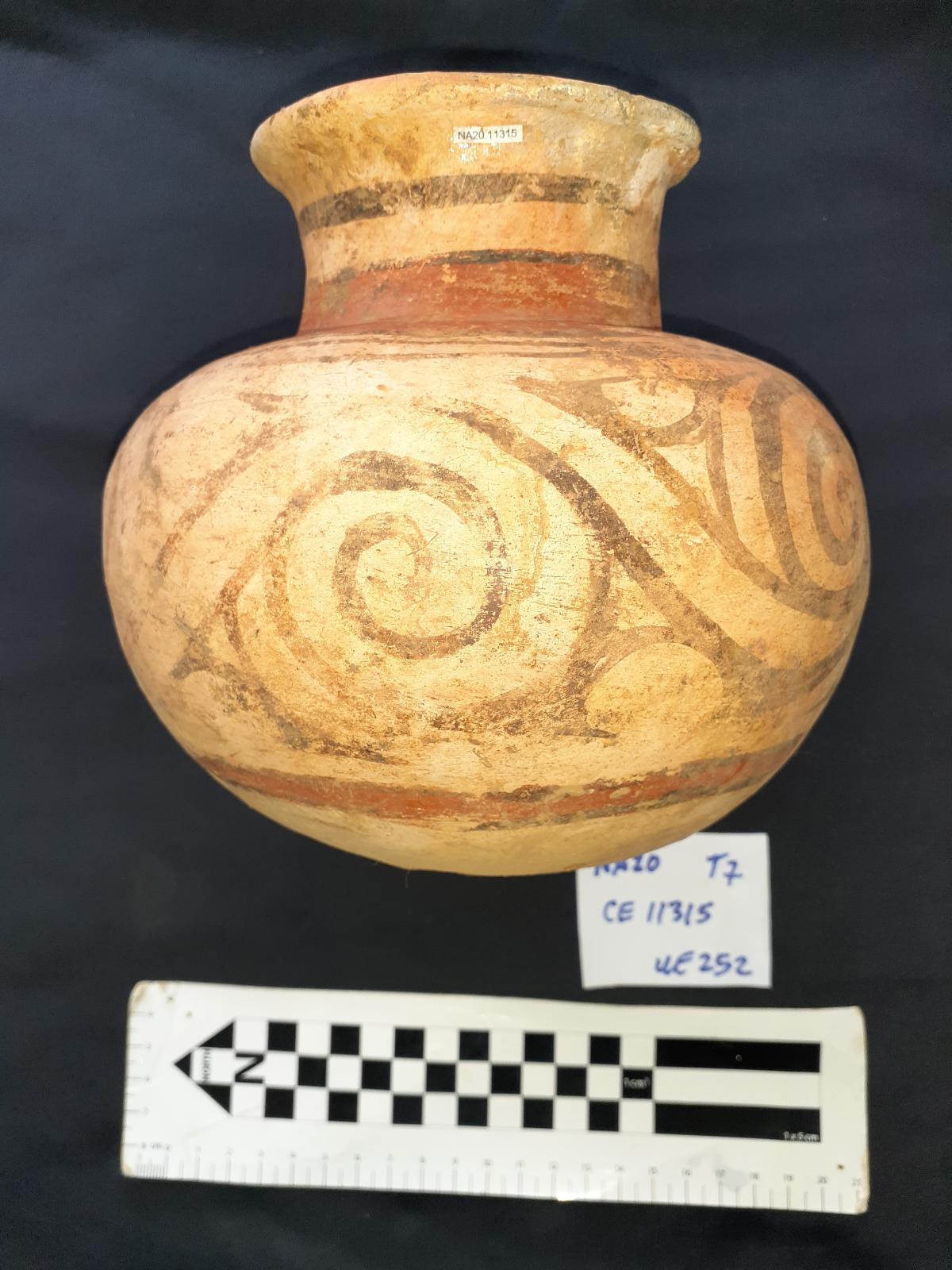 Tras colapsar la base de la ofrenda, solo una pequeña porción de las ofrendas permanecieron en su posición original. Esta sección ha sido identificada como UE252 (a.