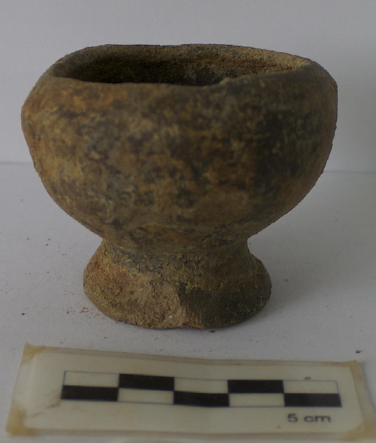 3568 - Pedestal bajo bicónico de engobe rojo y borde redondeado