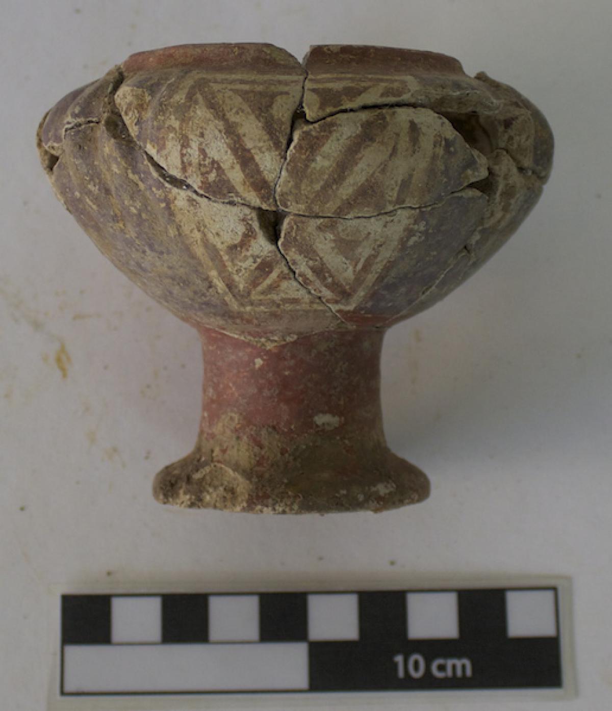3568 - Pedestal bajo bicónico de engobe rojo y borde redondeado