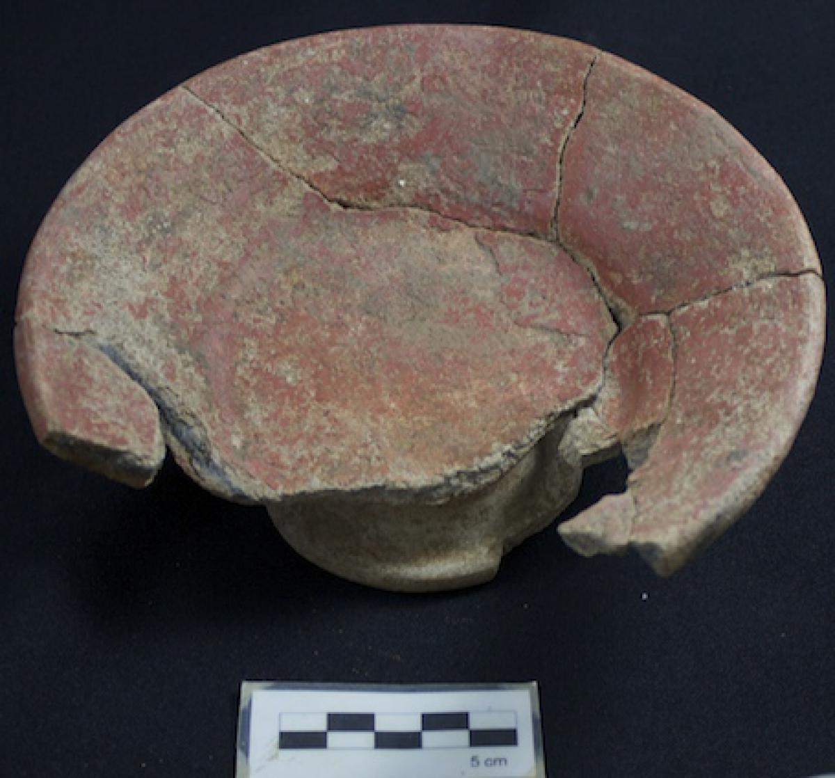 3568 - Pedestal bajo bicónico de engobe rojo y borde redondeado