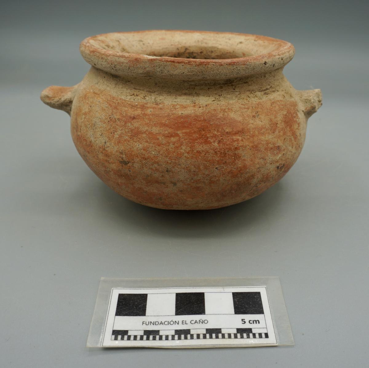 Vasija globular de cuello corto.