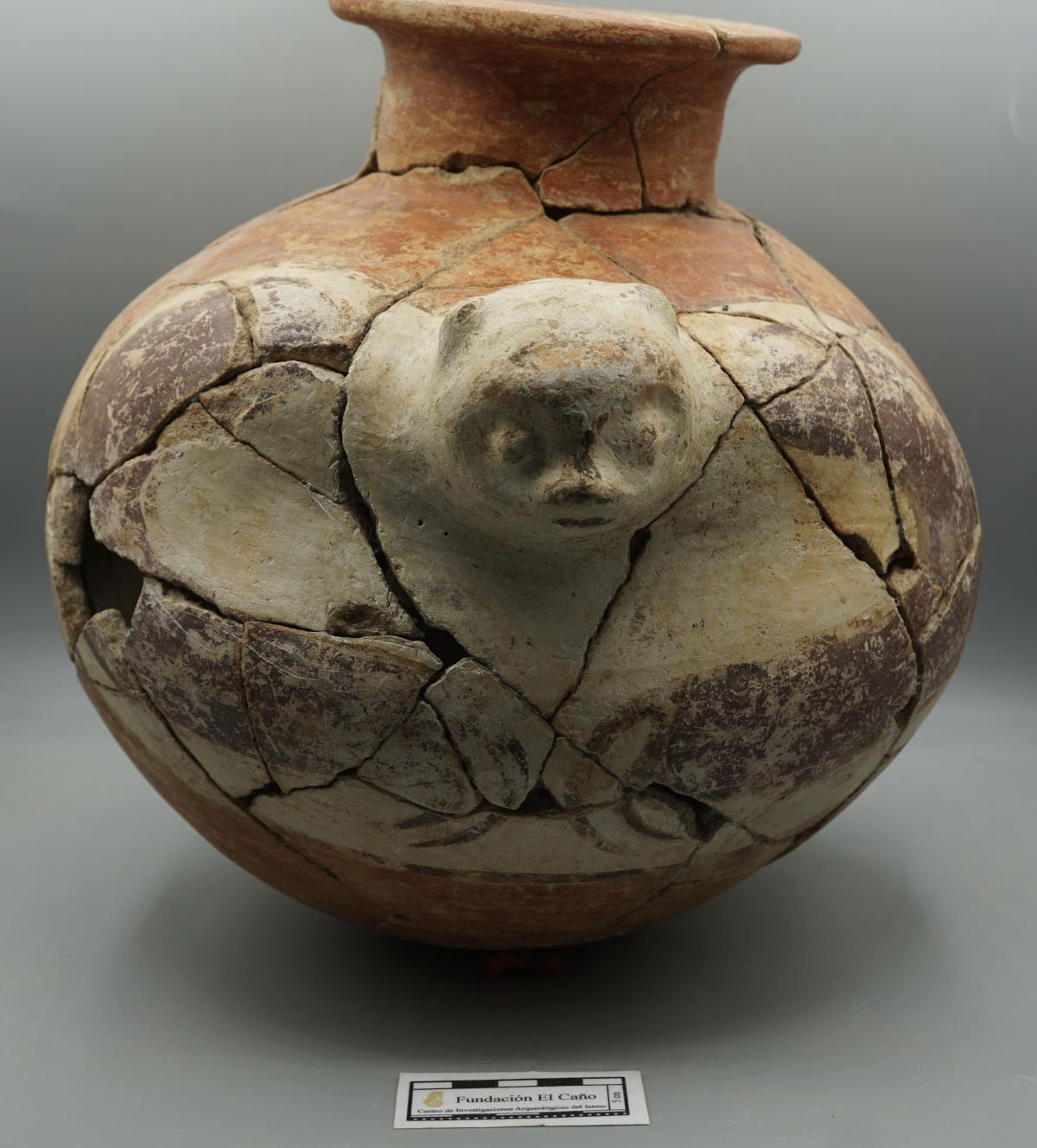 La matriz de tierra que envuelve a los huesos es de color gris-oscuro y contiene abundante material orgánico. Al NO de las osamentas se encontró un grupo de ajuares funerarios: brazaletes, dientes de cachalote (uno de ellos tallado), dientes de jaguares y pumas perforados, cuentas, placas, orejeras y pendientes de oro, pendientes de piedra verde y una esmeralda perforada. Junto al cráneo fue hallado un pectoral y una figura elaborada con un diente de cachalote representado a un individuo adulto con un niño en brazos y un mono a su espalda. La unidad contiene, además, hachas y azuelas y puntas de proyectil. El análisis radiométrico de una muestra de carbón arrojó una fecha de Cal DC 775 a 790 (Cal AP 1175 a 1160) / Cal DC 800 a 980 (Cal AP 1150 a 970). En la campaña de 2013 fue identificado con el número UE166.