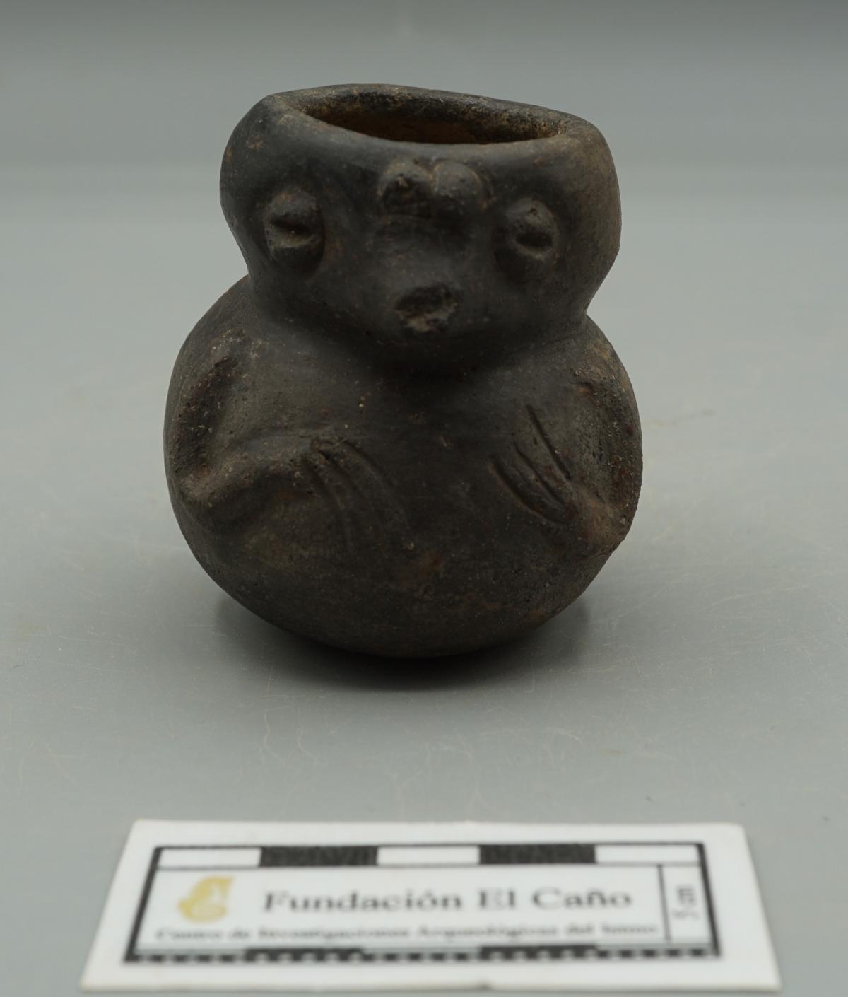 Jarra carenada zoomorfa. Representa a una tortuga de agua dulce "Trachemys venusta" que se caracteriza por tener un caparazón de círculos concéntricos y una cabeza con líneas longitudinales, similares a las que vemos en esta cerámica.